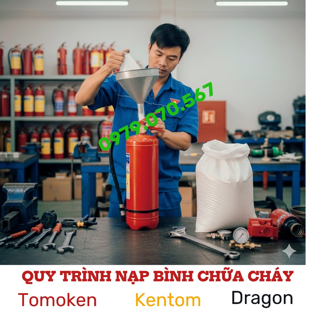 - Việc nạp bình chữa cháy cần có máy nén, cân đo chính xác và hệ thống an toàn.